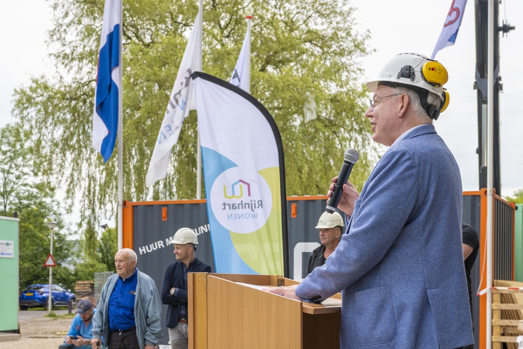 Chretien Mommers, directeur-bestuurder van Rijnhart Wonen, zegt: “Het bereiken van het hoogste punt bij de Pinksterbloem is een mooi moment om bij stil te staan. Ik ben dankbaar voor de samenwerking met de gemeente, aannemer Stout en alle betrokken partners. We kijken ernaar uit om toekomstige bewoners hier een thuis te bieden.”
