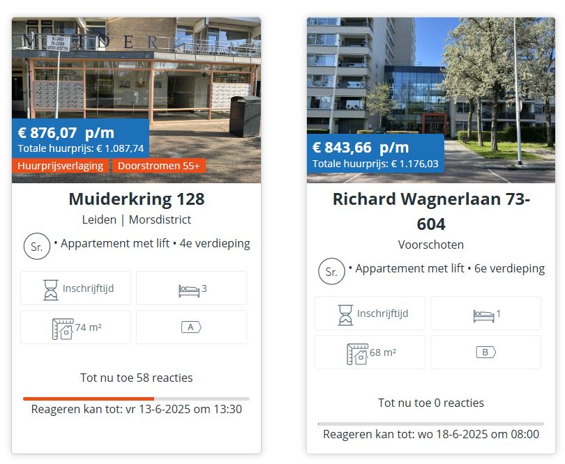 55-plussers krijgen voorrang als ze verhuizen naar een woning met het label Doorstromen 55+. De voorrang geldt als de huurder een eengezinswoning met minimaal 3 slaapkamers achterlaat, of een ander soort woning van minimaal 70m2 en 3 slaapkamers. Die corporatiewoning mag een sociale of een vrije sector huurwoning zijn, als deze maar in één van de 5 gemeenten van de Leidse regio staat: Leiden, Leiderdorp, Oegstgeest, Voorschoten of Zoeterwoude.