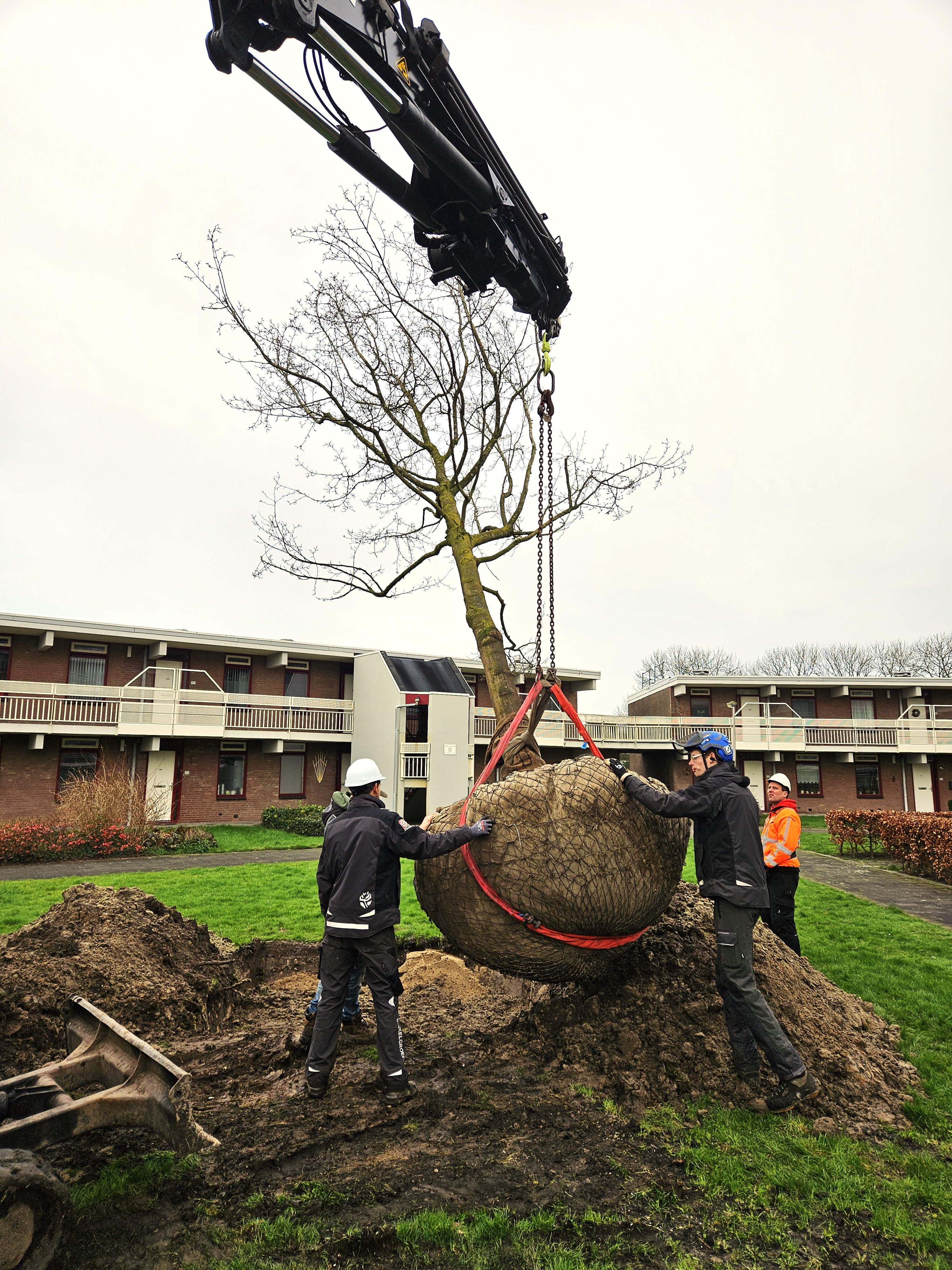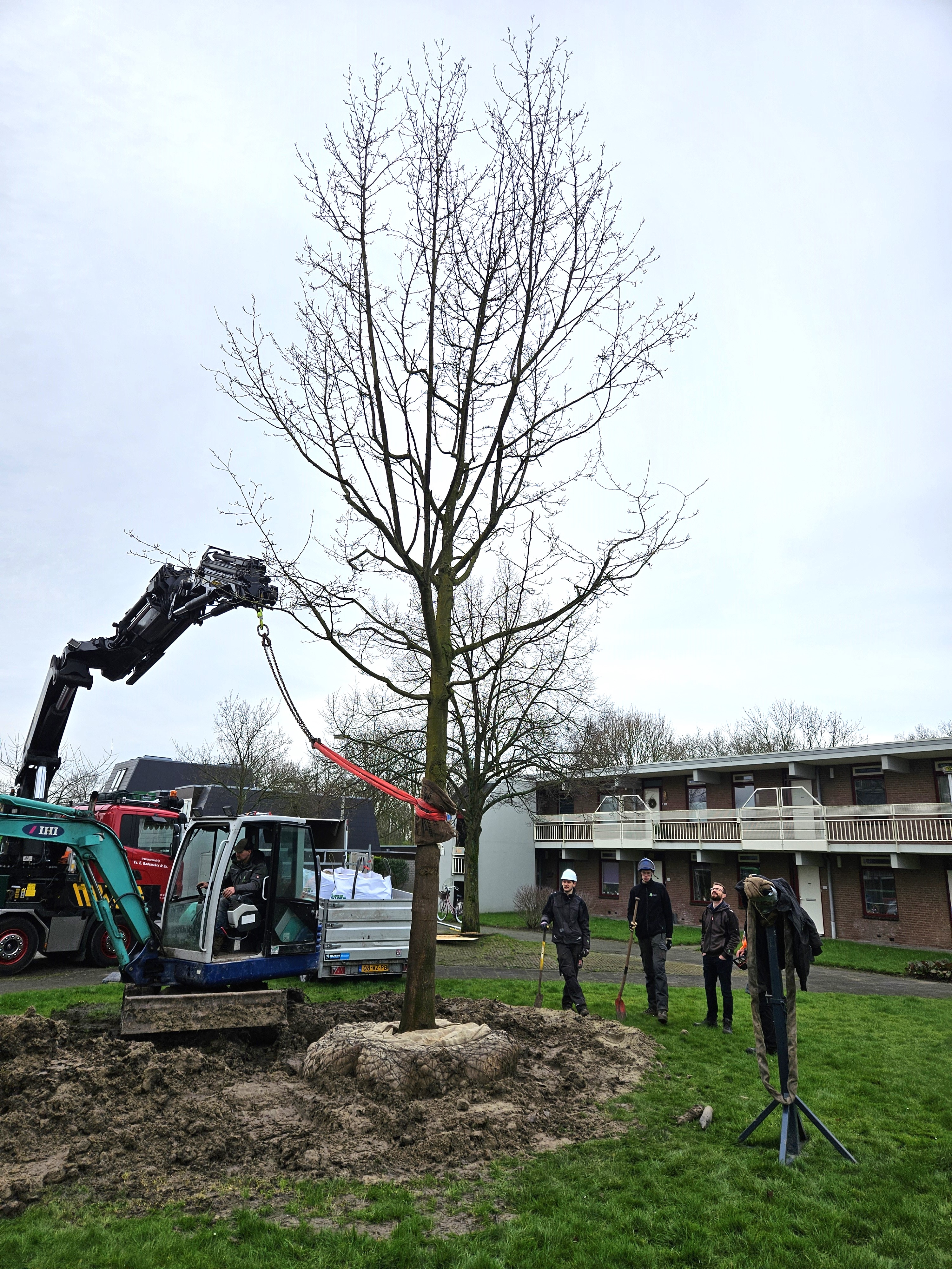 Eind vorig jaar werd bij de nieuwbouw aan de Pinksterbloem per ongeluk een magnoliaboom gekapt, die eigenlijk verplaatst zou worden. Joost Hulsbos, projectleider bij Pius Floris: “We betreuren dit voorval enorm. In samenwerking met de gemeente, Rijnhart Wonen en de bomenstichting hebben we ons ingezet voor een passende oplossing. Op een andere plek - aan de Boekweitkamp - in Leiderdorp planten we nu een nieuwe magnolia, die net zo groot is als de vorige. We hebben een prachtig, gelijkwaardig exemplaar gevonden bij een gespecialiseerde kweker.”
