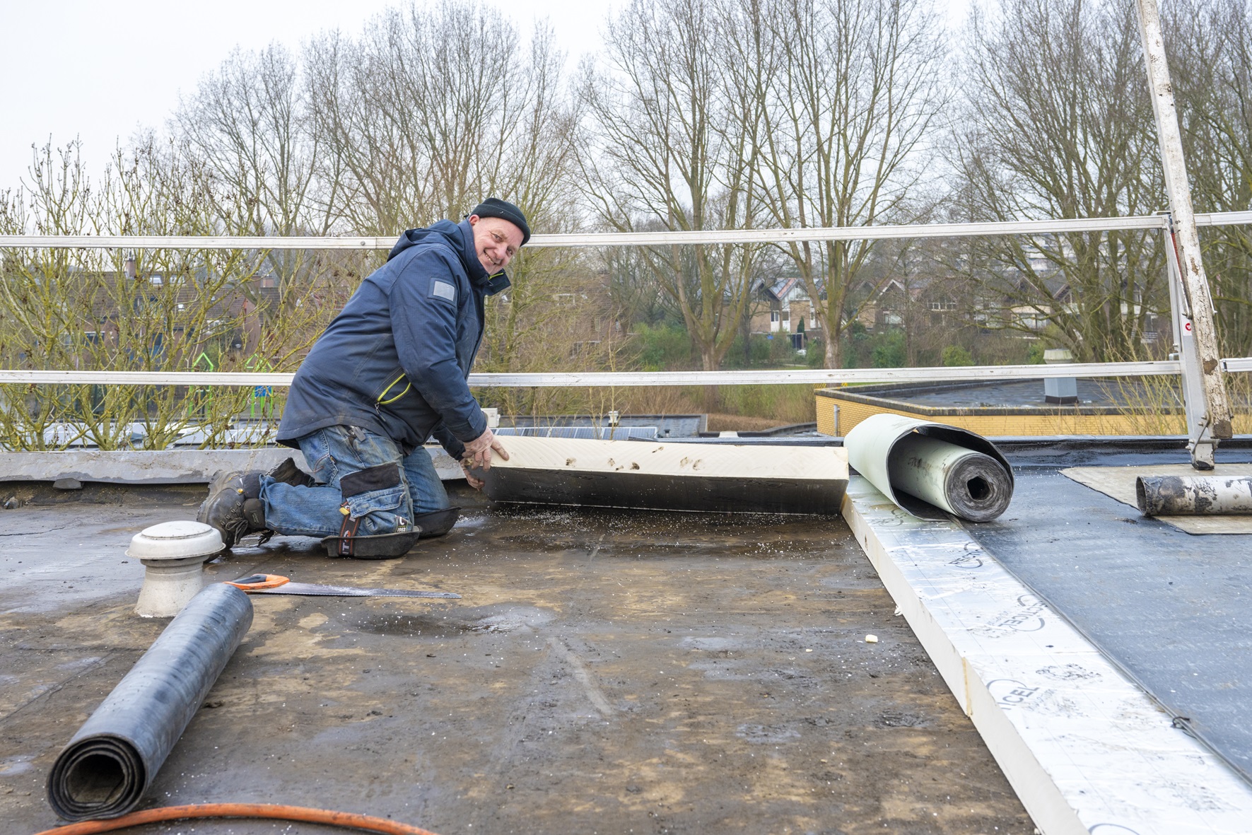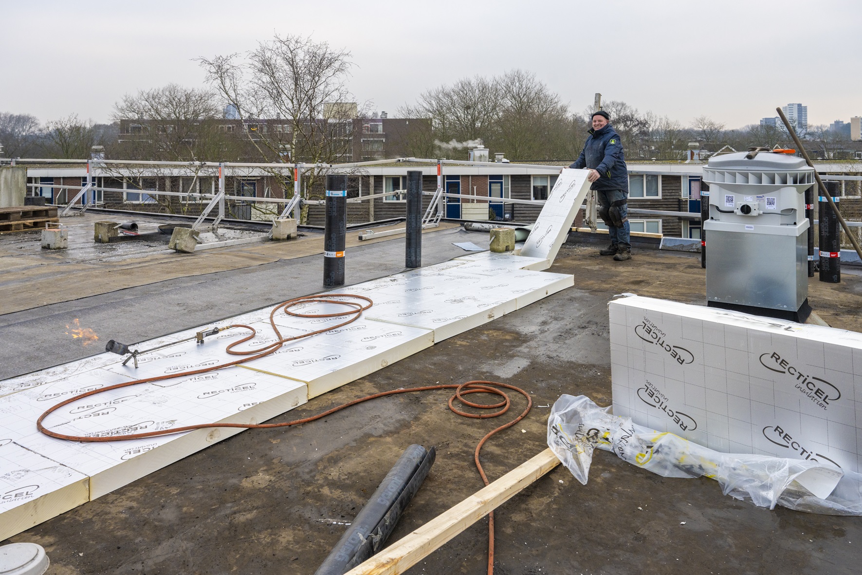 “We hebben deze kans aangegrepen om het dak meteen beter te maken”, vertelt projectleider Jurjen Tees. “Zo is er een nieuwe laag isolatie toegevoegd. Dat zorgt voor een comfortabeler binnenklimaat. Daarnaast vervangen we in samenwerking met Eltag ook de ventilatoren op het dak. Die zorgen voor meer frisse lucht in de woningen. De bewoners gaan hier nog jarenlang plezier van hebben.”
